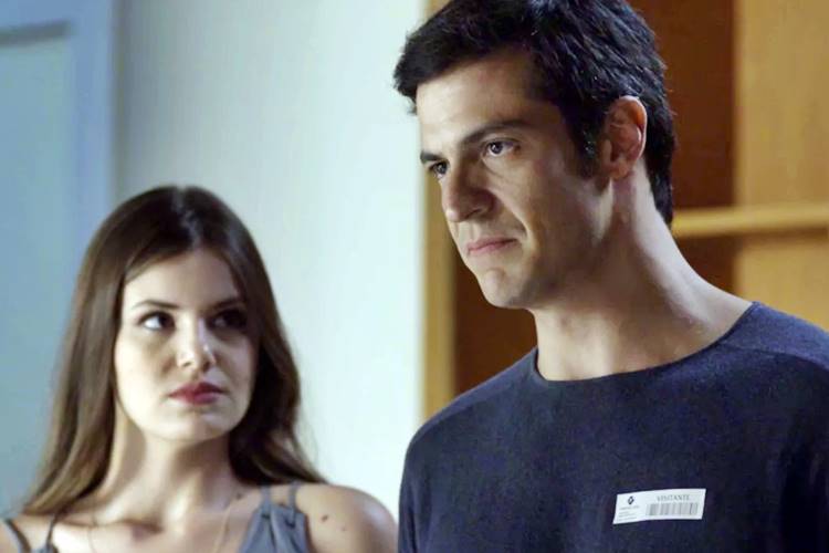 Acompanhado de Luíza (Camila Queiroz), Eric (Mateus Solano) vai buscar a filha, mas é mal recebido.