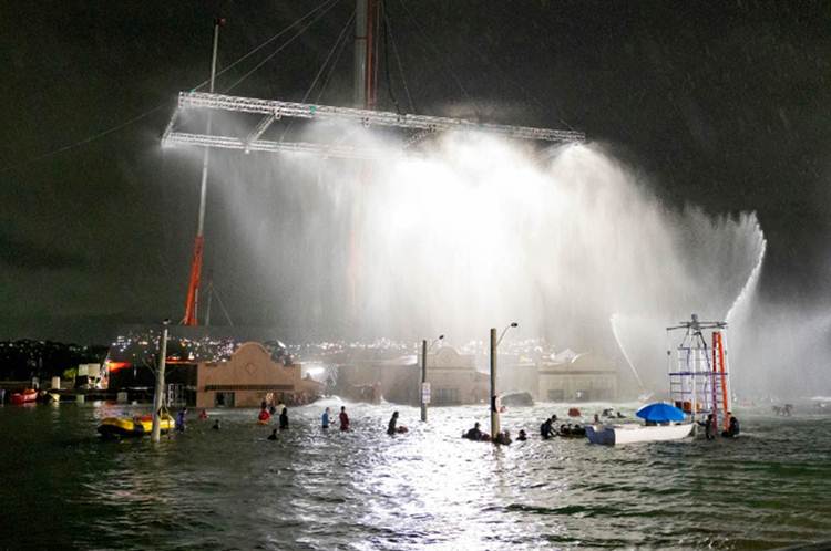 A estrutura de efeitos especiais (FX) utilizada no set envolveu tombadores de água, mangueiras de alta pressão para simular chuva e enxurrada, geradores de onda responsáveis pela variação da correnteza, tambores de ar comprimido para criar impactos e turbulência, além de elementos flutuantes, como veículos maquinados com sistema de ar comprimido para flutuação, possibilitando o deslocamento dentro da piscina durante a enchente e correnteza formada, e destroços cenográficos, que reforçaram o efeito de destruição.