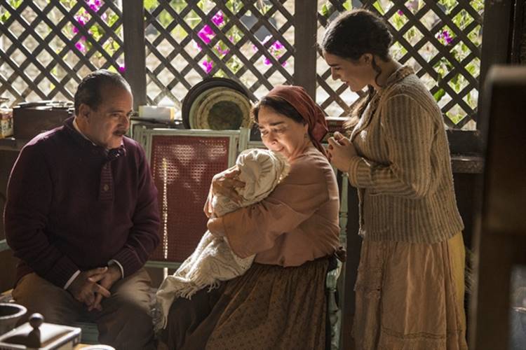 José Augusto diz o que o levou até Sobreiro: “Trouxe alguém para a senhora conhecer”. “Quem, senhor José Augusto?”, pergunta Angélica. Ele vai até o carro onde está Firmino e volta com a bebê nos braços. “Esta é Mariana, filha de Maria Vitória…”, ele diz. “A filha do meu…”, tenta falar Henriqueta, mas José Augusto a interrompe. “Achei que devias conhecer tua sobrinha-neta. Mariana, esta é tua tia, dona Henriqueta. E Angélica”, apresenta José Augusto, com muito carinho.