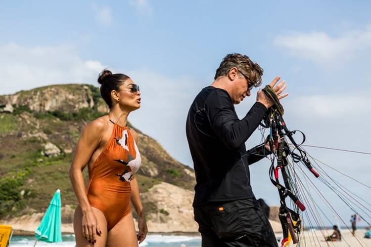 Só então a morena se dá conta de que está, mais uma vez, discutindo com Arthur. “Fala sério, Carol! Eu nunca ia jogar o parapente na direção das crianças! Foi o vento. (…) Eu pousei longe deles. Olha a marca na areia! Para de gritar e me ajuda a dobrar o parapente, por favor?”, o bon vivant tenta se defender.