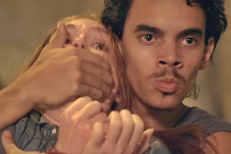 Eliza (Marina Ruy Barbosa) não vê a hora de ir até a delegacia ver Jonatas (Felipe Simas). Só que a ruiva não sabe que Jacaré (Sérgio Malheiros), Riscado (Cadu Paschoal) e Braço (Dhonata Augusto) esperam por ela escondidos na rua. Assim que a ruiva sai dá de cara com o bandidão da Lapa: “Cala a boca! Vem comigo”.