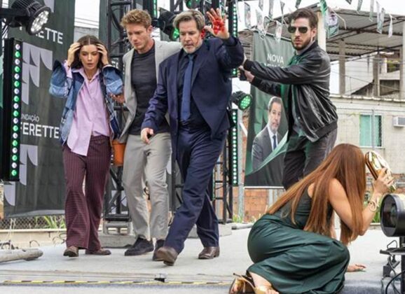 Na ocasião, Gerluce (Sophie Charlotte) encontra Paulinho (Romulo Estrela) a serviço, acompanhado do delegado Jairo (André Mattos) e Juquinha (Gabriela Medvedovsky). O clima está melhor entre os dois após ela pedir perdão por ter escondido informações sobre Rogério. A cerimônia começa e Ferette discursa para o público, apresentando Leonardo (Pedro Novaes) como seu sucessor no comando da Fundação. Arminda (Grazi Massafera) acompanha o discurso de perto. Neste momento, Misael (Belo) está com sua arma na mira do empresário, pronto para colocar o plano em prática no momento mais oportuno.