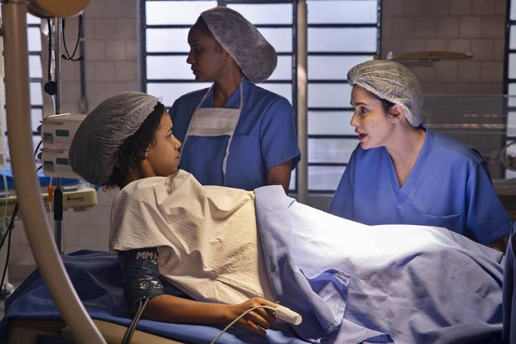 A partir do capítulo deste sábado, dia 21, de ‘Três Graças‘, Joélly (Alana Cabral) entra em trabalho de parto depois que Lena (Bárbara Reis) bate o carro enquanto é perseguida por Samira (Fernanda Vasconcellos). Muito assustada, a jovem, que estava indo ao shopping com a amiga para comprar peças do enxoval do bebê, percebe que a bolsa estourou. Indecisa, ela acaba aceitando ser levada ao hospital por Samira e Edilberto (Júlio Rocha), já fazendo apelos para que não peguem a criança depois do nascimento.