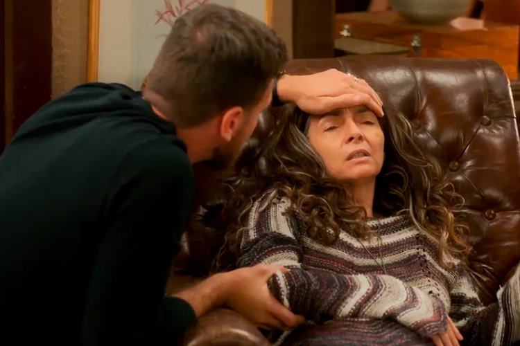 A mãe da loira dirá o seguinte: ”Ninguém é obrigado a ficar onde se sente mal!”. Sendo assim, o genro da mulher perguntará: ”Está me expulsando daqui, Dora?! É isso?’‘. Logo na sequência, Lumiar fará um pedido para Theo: ”Não ergue a voz pra minha mãe!’‘, refletirá. No outro dia o vilão resolve ir embora do ambiente, mas pela noite encontrará a mãe de sua amada passando mal na cozinha. Ele indagará: ”Está tudo bem?”. E Dora reagirá: ”Me deu uma tontura. Daqui a pouco passa”.