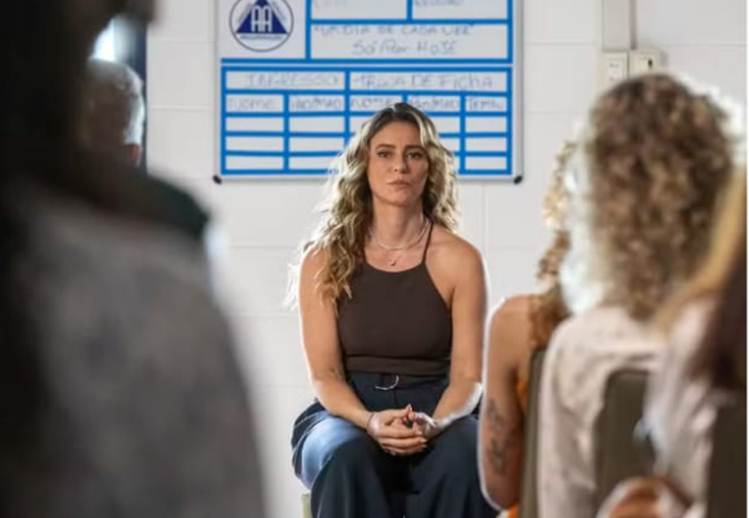 Lá, a mocinha complicada ouve depoimentos tocantes e, emocionada, compartilha sua própria história, revelando que começou a beber aos 16 anos e que o vício se intensificou após a morte de seu irmão gêmeo, Leonardo (Guilherme Magon). Ela declara que aquele será seu “dia um” de recuperação.