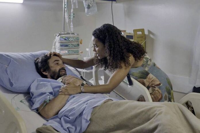 Depois de passar mal ao embarcar no jatinho de Marco Aurélio (Alexandre Nero), que o levaria para os Estados Unidos, Rubinho é conduzido às pressas para o hospital numa ambulância com Raquel (Taís Araujo) e Cláudia (Rhaisa Batista), ao lado, desesperadas.