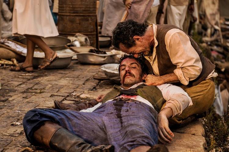 O assassino surge de repente e aponta uma arma para Ernesto. Sem que ele possa reagir, o criminoso atira, deixando Belmiro (Chico Diaz) desesperado com a morte do patrão. “Capitão… Capitããããoooooo!”, grita o retirante, no meio do povo que, chocado, se aglomera para tentar socorrê-lo.
