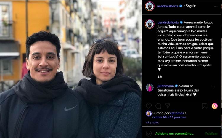 Ela continuou falando de amizade. “sermos amigos, saber que estamos aqui um para o outro porque também o que é o amor sem uma bela amizade? O casamento acabou mas seguiremos honrando o amor que nos uniu com carinho e respeito”, finalizou.