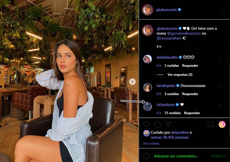 E parece que os pombinhos não fazem a mínima questão de esconder o interesse um pelo outro. Eles andam trocando corações em comentários de publicações nas redes sociais. Em seu último post no Instagram, Giullia recebeu mais um coração do atleta.