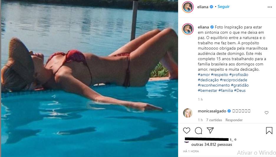 Logo em seguida, nos comentários, Eva recebeu ainda mais carinho de seu público. ”Ela sempre foi a minha atriz favorita.”, disse inicialmente um seguidor. ”Saúde, Paz, Felicidade, Bênçãos pra você”, desejou outra internauta. ”Feliz por sua recuperação“, disse um terceiro ainda.