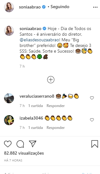 “Querida @anamaria16 receba todo o meu carinho. Meus sentimentos aos amigos e familiares do ator Tom Veiga que interpretava o carismático Louro José. Triste notícia. Descanse em paz“, Eliana.