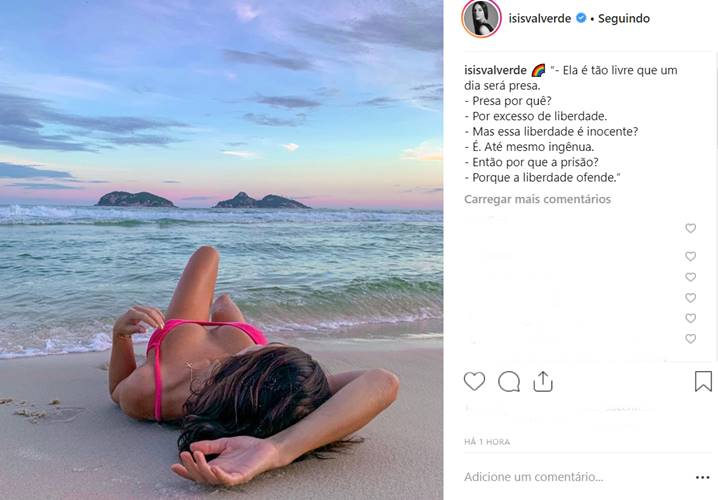 Nos comentários muitos elogios: “Linda maravilhosa”, “Tão linda”, “Linda sem ser vulgar, sem falar besteiras. Continue sempre com essa postura, sem exposição desnecessária e sem excessos”, “A mais lindo Brasil”, foram apenas alguns dos elogios.