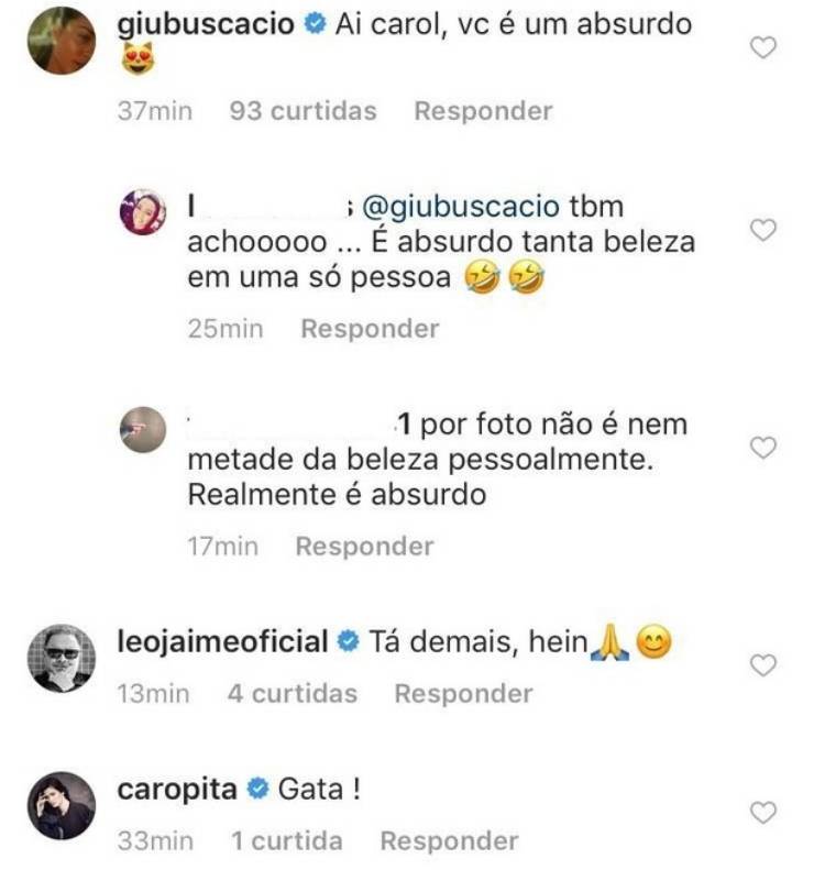 “Vá cuidar da sua vida e da do seu filho ao invés de ficar na rede social”, “está querendo se mostrar pra quem? Saia da internet e vá curtir seu filho”, “desnecessário ficar mostrando o corpo assim, respeite as outras mães que não estão conseguindo voltar ao corpo normal mesmo meses e até anos depois de parir”, “onde vocês estão vendo corpo perfeito? A barriga está inchada”, “essa não é a realidade das mães no puerpério. Você é mãe de novela”, criticaram algumas seguidoras.