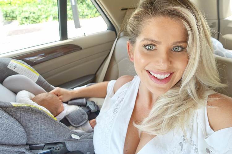 No click, a apresentadora exibe o momento em que deixa a maternidade em que teve o seu filho em Miami, nos Estados Unidos e registra o primeiro passeio de carro do Enrico.