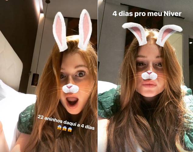 Logo em seguida, a noiva de Xandinho brincou com os filtros do aplicativo e apareceu com orelhinhas de coelho: “22 aninhos daqui a 4 dias“.