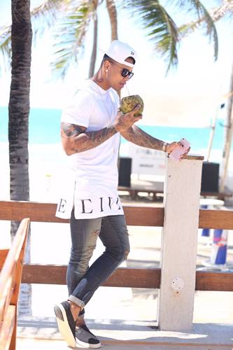 Em Fortaleza para divulgação da gravação do seu primeiro DVD em carreira solo, Léo Santana foi ao local onde será a gravação e posou para fotos aproveitando um pouco da praia e do sol.