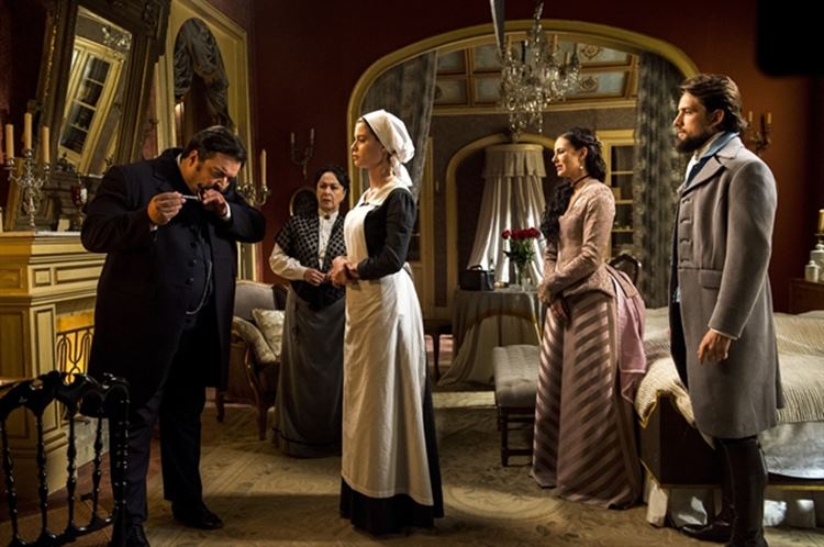Juliana dorme e sonha com Miguel. Custódio toma café da manhã com as filhas e a esposa Beatrice. Elas estão ansiosas. Custódio diz a Maria Isabel sobre o futuro marido dela. Juliana colhe frutas em cima da árvore e Almeida se aproxima. Ela se assusta, desequilibra e cai no colo dele. Ela quer saber quem é ele, e Almeida diz ser o futuro dono dela. Ele enfia a mão por dentro do vestido de Juliana que pede para soltá-la. Almeida e Juliana se surpreendem com a chegada de Miguel que ordena que solte a moça.