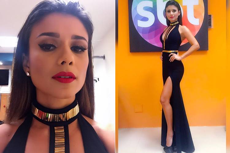 A cantora escolheu um vestido preto justo com detalhes dourados e fenda na perna. Aproveitando o clique Paula perguntou aos seguidores as opiniões sobre a maquiagem e o penteado: Olha como fiquei meus amores?! Como estou? Vocês gostaram? Batom vermelho e olhos delineados! Cabelo liso com aspecto molhado!”
