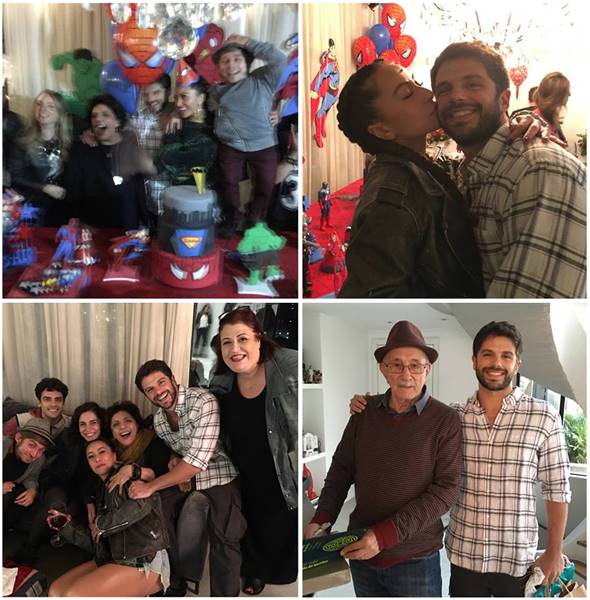 “Sabe aquela velha máxima: “quem tema amigo, tem tudo? É a mais pura verdade! Resolvemos comemorar o aniversário do super Duda antecipadamente. Mas claro que decidimos fazer da última hora. E assim, faltando menos de 4 horas pra festa começar, meu super amigo, Henrique Martins arregaçou as mangas, saiu para comprar tudo que precisava e fez uma decoração caprichada. Nossa super Mariana Franco Junqueira comprou a ideia e mandou um bolo lindo, delicioso e doces maravilhosos. E completando a nossa equipe de super amigos o produtor Lucas Cecílio mostrou seus super poderes me matéria de organizar cada detalhe. E assim, o que era pra ser um churras para 30 amigos da novela virou uma super comemoração. E tudo foi tão perfeito, e o Duda tão amado, que até a super mãe Leda Nagle veio do Rio para comemorar junto. E já que a festa foi feita por tanta gente super poderosa para um homem super especial como o Duda o tema só poderia mesmo ser esse: Super Heróis. Viva os super heróis que nos inspiram, cada super amigo que ajudou a realizar esse festa, todos os super amigos presentes e ao grande herói que a cada dia faz por merecer tanto carinho: o Super Duda”.