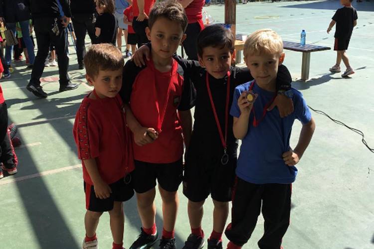 Nesta sexta-feira (13), David mostrou que leva jeito para os esportes, como o pai, ao conquistar uma medalha nas Olimpíadas na escola, em Barcelona.
