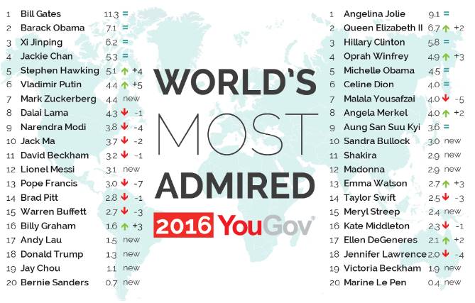 Confira a lista completa de pessoas mais admiradas no Mundo: