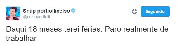 Apesar de pipocar que o apresentador pretendia deixar o comando da atração, Celso esclareceu o mal entendido: “Daqui 18 meses terei férias. Paro realmente de trabalhar“, tudo pareceu uma grande brincadeira do apresentador.