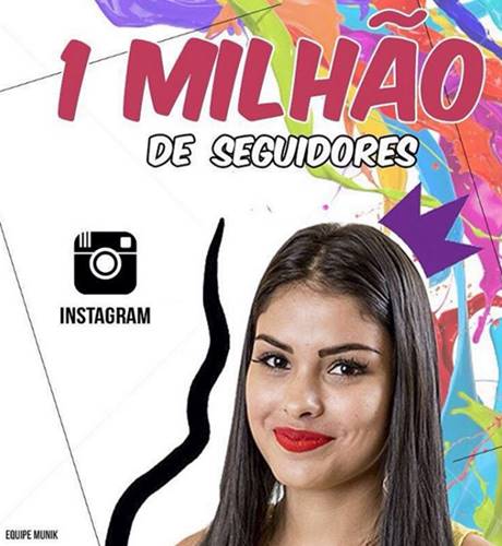 “1 milhão de Munikers? Genteee muito obrigado pelo carinho com a Munik, vocês são os melhores, tudo que fizemos e faremos agora são por vocês!! Muito obrigado mesmo!!! Todos nós amamos vocês!! #EquipeMunik #1MilhaoDeMunikersNoIg #MunikNunes #VAISAFADAO”, escreveu ela na legenda da imagem.