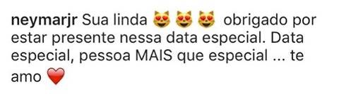 Neste domingo (5), Neymar ganhou uma declaração romântica no dia de seu aniversário, de sua namorada, Bruna Marquezine. O craque comemora hoje seus 25 anos.