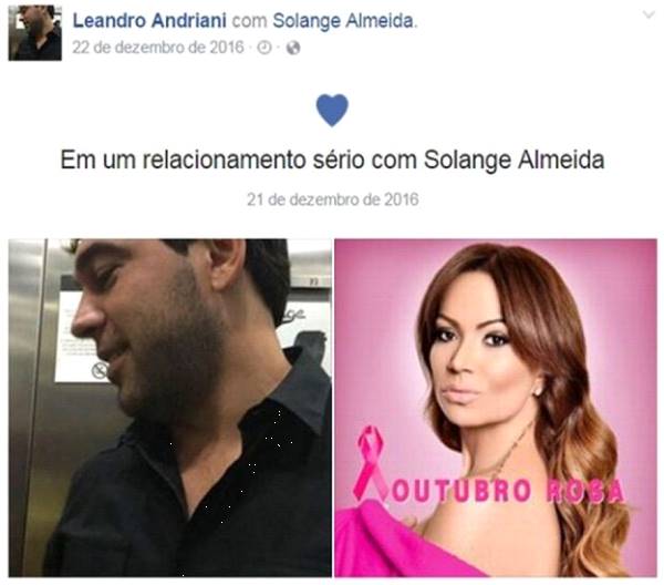 Embora o novo namorado da beldade tenha assumido o relacionamento sério através do Facebook apenas no dia 22/12, há rumores de que os dois já estejam juntos há mais de um mês. Em uma das fotos publicadas pelo amado, Solange se derrete para o novo amor: “Meu amor, já estava escrito! 19 dias que mais parecem 20 anos, como você mesmo diz! ”, publicou a cantora.