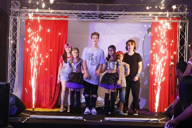 Os atores entraram no palco e cantaram com as aniversariantes. João Guilherme fez um Pocket Show. No final, todos os artistas se divertiram e cantaram parabéns, para emoção das garotas.