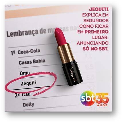 O resultado comprova a força do SBT em construir e gerar percepção de marca, uma vez que a Jequiti só anuncia na emissora do mesmo Grupo. Analisando a evolução da pesquisa, a Jequiti estava na segunda posição em fevereiro deste ano, ultrapassando agora marcas como Itáu, Havaianas e Skol, por exemplo.