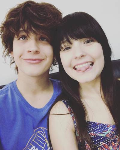 Na selfie, a intérprete das gêmeas Manuela e Isabela, de “Cúmplices”, aparece de cabelos escuros e franja, já o ator que dá vida à Joaquim na trama do SBT, exibiu madeixas cumpridas e rebeldes.