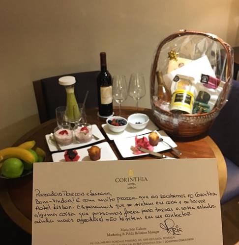 O apresentador Marcos Mion e sua mulher Suzana Gullo, designer, comemoraram no Corinthia Hotel Lisbon, completo empreendimento hoteleiro de Lisboa, uma nova fase da vida. Durante a estadia no país, o casal realizou visitas a pontos religiosos de Portugal, como a cidade de Fátima, para agradecer a grande vitória que tiveram na luta de Suzana Gullo contra um câncer de mama.