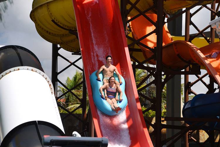 Mateus Solano aproveitou o fim das gravações de Liberdade, Liberdade para se divertir com a família no Beach Park, em Aquiraz, Ceará.