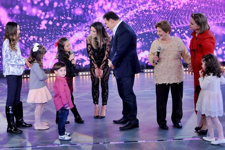 Ratinho também se surpreende com a presença da família no palco. A mãe do apresentador fez questão de trazer o prato preferido dele: a famosa macarronada da mama. E, no momento ternura, seus netos invadem o palco para abraçar o vovô famoso.