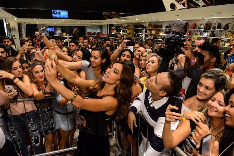 A apresentadora que assina uma coleção de bolsas e acessórios pela grife desfilou os modelos da coleção Outono/ Inverno 2016. Após o desfile a bela atendeu a imprensa presente no local e posou com os fãs distribuindo selfies e autógrafos.