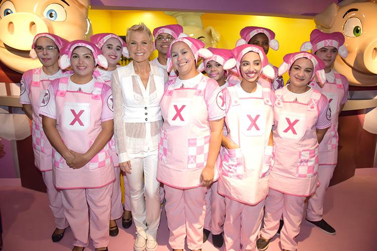 “Esse carinho que eu recebo em cada inauguração é incrível! Tem muito adulto querendo fazer festa na Casa X! É um privilégio tão grande fazer parte dessas 3 gerações… Essa energia que fica e faz as mães chorarem quando descem da nave… É tudo muito emocionante”, conta Xuxa ao lado do namorado Junno Andrade e dos fraqueados Breno Taveira e Cláudio Prenassi.