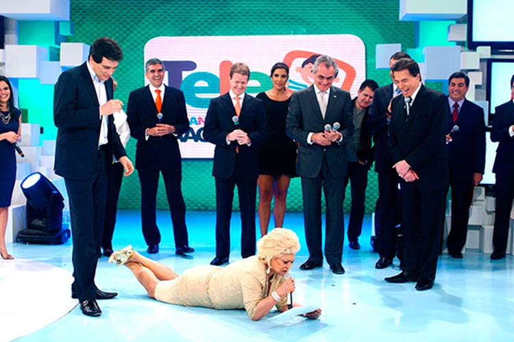 8 – Em 2010, Hebe Camargo deitou-se no chão após receber a doação de R$ 4.500.000,00 milhões no palco do Teleton. Com este valor, a meta foi atingida e arrecadou um total de R$ 23.971.095,00 milhões.