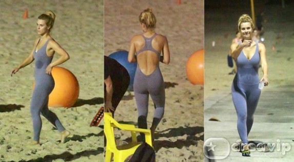 Carolina Dieckmann foi clicada malhando na praia de São Conrado no Rio de Janeiro, na noite de segunda (26). Usando uma roupa bem justa, a atriz exibiu belas curvas e suou para manter o corpinho em forma.