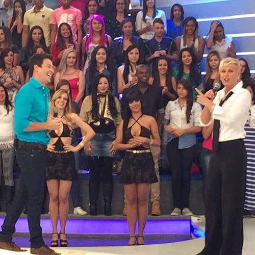 Xuxa Meneghel esteve na quinta (21), gravando uma chamada especial, para seu novo programa, nos estúdios da Record, na Barra Funda, em São Paulo. A apresentadora gravou ao lado de Rodrigo Faro, no palco do programa ‘A Hora do Faro’. A nova atração da loira deve estrear em agosto na emissora.