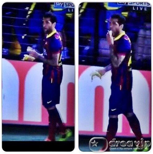 Famosos postaram fotos nas redes sociais em apoio a Daniel Alves, que foi vítima de racismo no domingo (27), durante o jogo do Barcelona contra o Villarreal, na Espanha. Uma banana foi jogada no brasileiro no momento em que ele iria cobrar um escanteio. O jogador pegou a fruta do chão e comeu. Vários artistas posaram para fotos com uma banana na mão.
