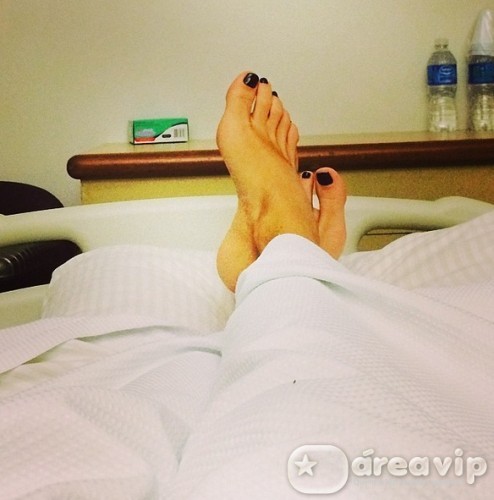 Em seu Instagram a apresentadora postou uma foto no hospital. “To de molho… Mas tenho certeza que com o amor e o carinho que recebo de vcs sempre… Logo mais to em casa”.