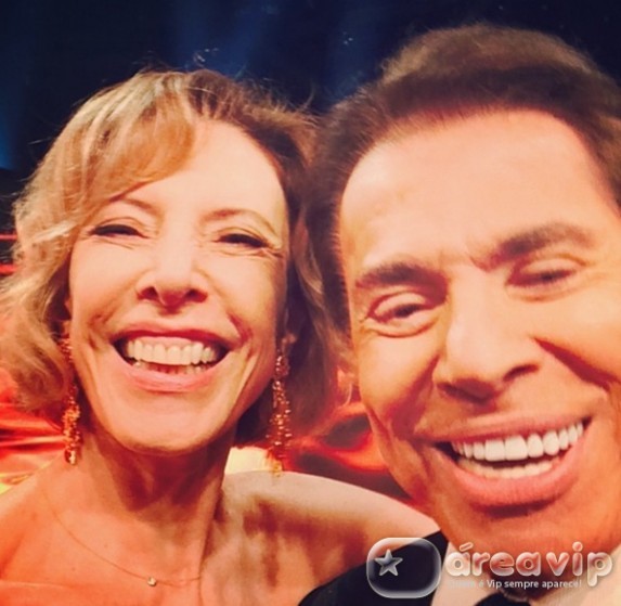 “Selfie com o patrão. Uma vez por ano a gente se encontra na gravação do troféu Imprensa. Foi hoje, pronto. Eu e ” seo ” Sílvio ! Boa tarde, amigos meus”, escreveu a apresentadora na legenda da foto.