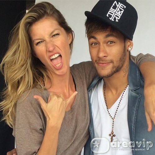 Neymar postou em seu Instagram, fotos ao lado da top Gisele Bündchen. As beldades posaram para revista ‘Vogue Brasil’.