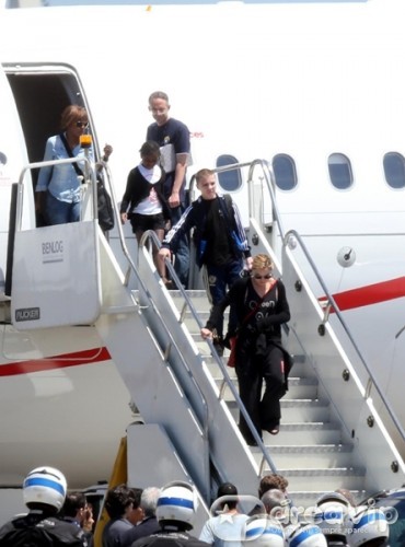 Madonna desembarcou nesta sexta-feira (30) no aeroporto do Galeão no Rio de Janeiro com toda a família. A cantora estava com seus quatro filhos, Lourdes Maria, Rocco, Mercy e David e o namorado Brahim Zaibat.