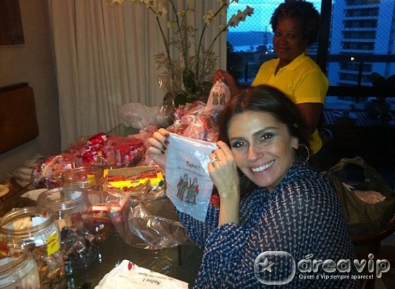 Giovanna Antonelli postou em seu Twitter uma foto fazendo as sacolinhas com doces para distribuir para as crianças nesta quinta-feira (27), Dia de São Cosme e Damião.