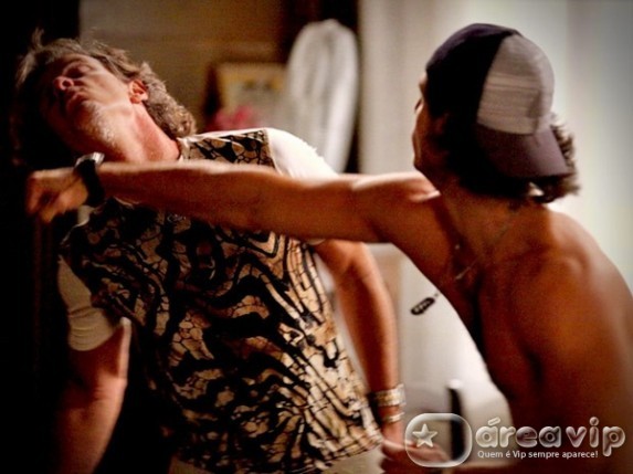 Irado, Max parte para cima do rapaz, mas acaba levando a pior. Ele leva uma surra de Lúcio! Apenas depois de apanhar muito, o malandro consegue se desvencilhar e fugir correndo. “Tu tem é sorte de não amanhecer num valão, com uma bala na cabeça!”, ameaça Lúcio.