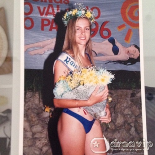 “Olha eu! Rainha das Piscinas do clube Aliança de Santa Cruz do Sul 96. Pouco antes do meu começo como modelo. Olha o tamanho da bunda e da coxa. Ficou ruim pra Lizi Benites e pra Dani Bolina. Quando tirei a foto tinha 14 anos, foi em janeiro de 96”, escreveu a apresentadora.