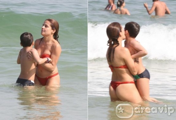 Nívea Stelmann foi clicada no domingo (9), na praia da Barra da Tijuca no Rio de Janeiro. Esbanjando ótima forma, a atriz curtiu ao lado do filho, Miguel.