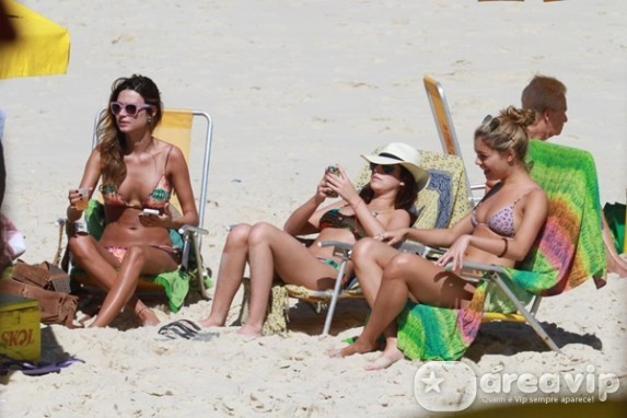 Fernanda Paes Leme, Thaila Ayala e Sophie Charlotte curtiram juntas a praia da Reserva, no Recreio dos Bandeirantes, no Rio de Janeiro, na segunda-feira (20). O trio exibiu boa forma.